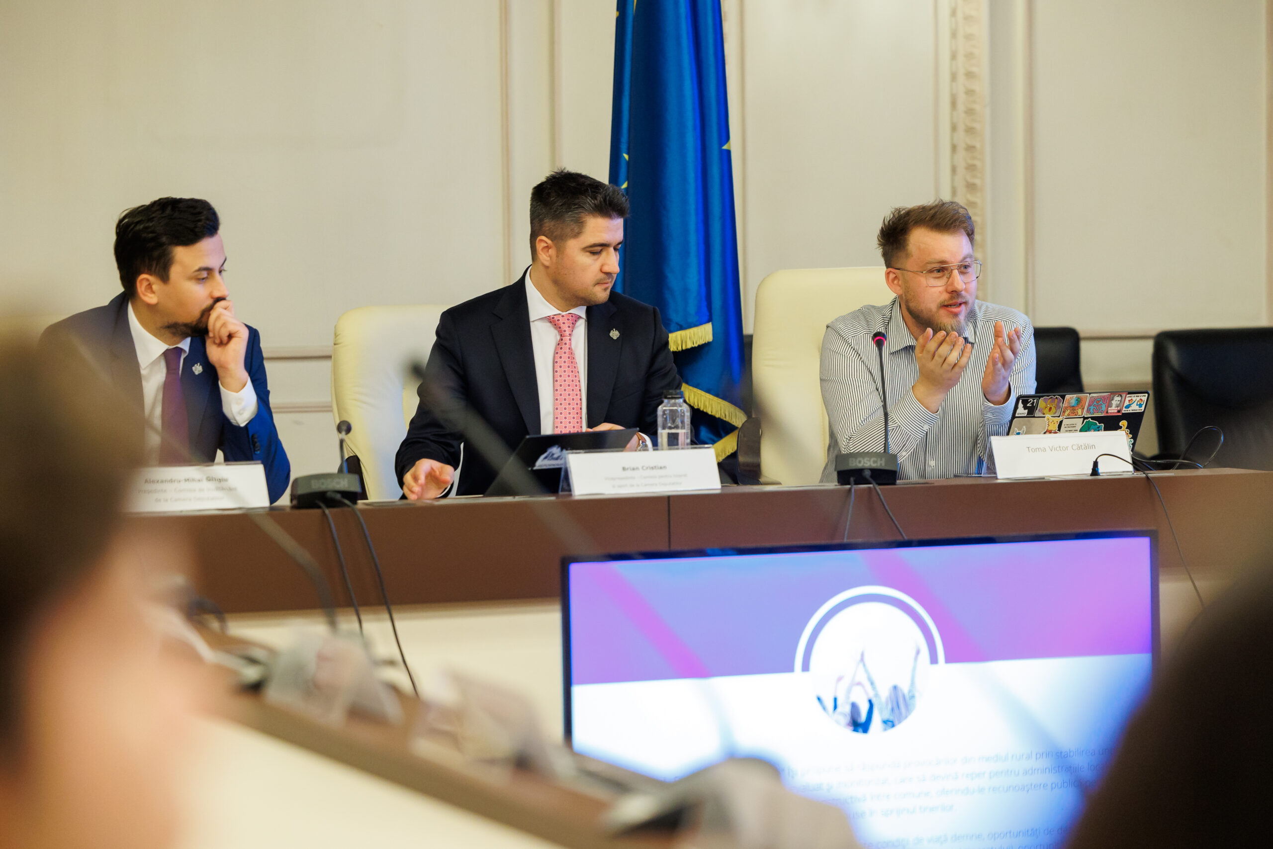 Întâlnirea, organizată sub umbrela programului European Youth Village, în colaborare cu Comisia pentru tineret și sport din Camera Deputaților, a fost deschisă de deputatul Brian Cristian, gazda evenimentului, care a sprijinit organizarea evenimentului și a încurajat dialogul dintre tineri și decidenți.